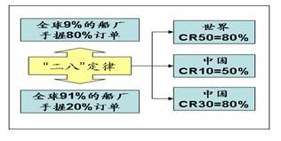 整個(gè)造船市場某種程度上遵循“二八定律”,換句話說,少數(shù)幾家造船廠(集團(tuán))控制整個(gè)新造船市場。