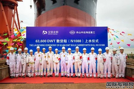 9月22日10點(diǎn)38分,舟山中遠(yuǎn)海運(yùn)重工為交銀金融租賃股份有限公司建造的63600噸系列散貨船第三艘船(N1088)在公司2號船臺順利上水。
