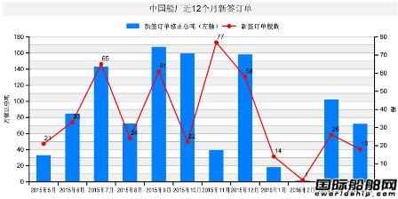 按船型分析,新簽訂單的主要船型為礦砂船、車客渡船、油船和化學(xué)品油船,其中礦砂船10艘,48.4萬CGT;車客渡船4艘,14.8萬CGT;油船2艘,5.1萬CGT;化學(xué)品油船2艘,3.2萬CGT;接單量較多的為VLOC,為10艘。