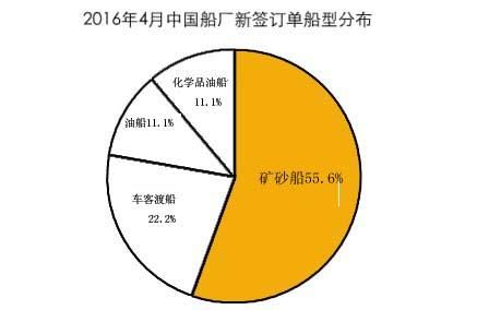 按船廠分析,2016年4月,接單量排名前三位的船廠依次為新?lián)P子造船、北船重工和中航威海船廠,接單量分別為29.1萬、19.4萬和14.8萬CGT。