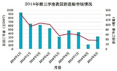 據克拉克松統(tǒng)計,2014年前三季度,我國造船新接訂單691艘,4399萬載重噸,占到全球新接訂單量(以載重噸計)的48.3%,較2013年全年我國占全球新接訂單占比47.7%略有提高。