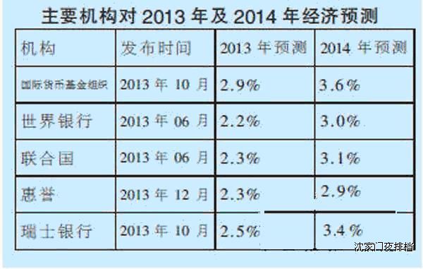 全球經(jīng)濟(jì)復(fù)蘇:2014年,全球經(jīng)濟(jì)復(fù)蘇勢(shì)頭將持續(xù),主要機(jī)構(gòu)對(duì)2014年經(jīng)濟(jì)發(fā)展的預(yù)測(cè)表明了這一觀點(diǎn)(見(jiàn)表格)。