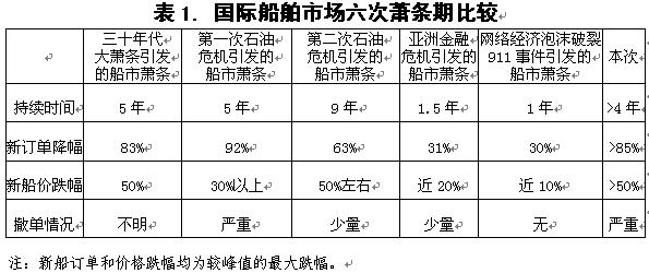 任何人均無法準確無誤地預(yù)測本次船市蕭條期的長短。目前,由于還存在太多的不確定性因素,使得我們無法確定本次后危機時期的經(jīng)濟走向。我們認為,船市蕭條的終結(jié)有賴于前幾年船市高度興旺過程中積聚成的兩大泡沫【一是6.4億載重噸船舶手持訂單(2008年9月歷史最高位),二是2億載重噸造船產(chǎn)能】的擠出;世界經(jīng)濟及早復(fù)蘇并不一定能有效縮短航運蕭條期,加速拆解老舊船舶和大量撤銷造船訂單才能使航運市場提前復(fù)蘇;而造船市場供求關(guān)系的改善不僅要靠新船訂單量明顯增加,更有賴于全球過剩造船能力的處置。但是,大量拆解船舶對船東并不輕松,而造船訂單被大量撤銷和大幅度處置過剩造船能力對船廠造成的極大困難也是不言而喻的。至于本次船市蕭條持續(xù)時間,我們認為船市蕭條期起碼要比世界經(jīng)濟金融危機長,即使世界經(jīng)濟出現(xiàn)復(fù)蘇,傳導(dǎo)至船舶市場還需要一段時間,最樂觀估計本次船舶市場蕭條期持續(xù)時間至少在7-8年,如果世界經(jīng)濟不能持續(xù)有效復(fù)蘇,世界造船市場蕭條持續(xù)時間將更長。