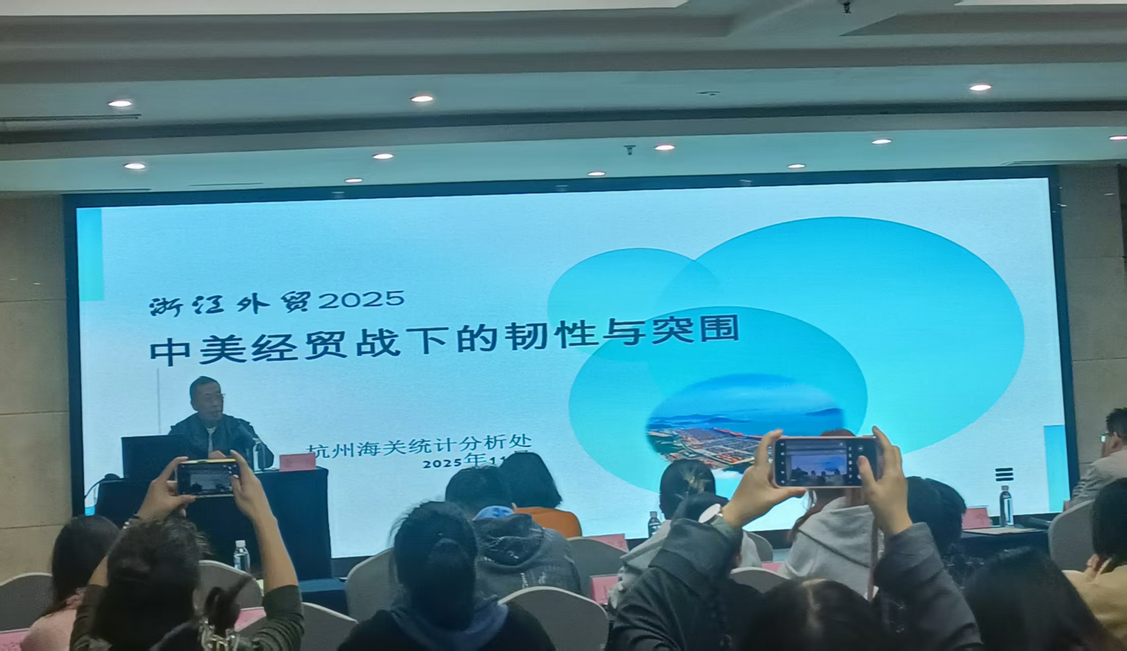 11月13日上午,海關(guān)一級調(diào)研員丁處長以“2025年中美經(jīng)貿(mào)戰(zhàn)下的韌性與突圍”為題作了深入分析,并結(jié)合浙江省各市的進(jìn)出口數(shù)據(jù)進(jìn)行了細(xì)致解讀。國家外匯管理局溫州市分局陳婷婷老師系統(tǒng)介紹了匯率避險及相關(guān)支持政策,為各監(jiān)測點應(yīng)對外匯波動提供了實用指導(dǎo)。當(dāng)日下午,省商務(wù)廳貿(mào)發(fā)處副處長樂寧、李臻副主任等領(lǐng)導(dǎo)共同組織了全省商務(wù)運行調(diào)查監(jiān)測系統(tǒng)工作座談會。來自全省各市、區(qū)縣的與會代表,圍繞監(jiān)測工作現(xiàn)狀、遇到的困難與挑戰(zhàn)、當(dāng)前形勢研判、企業(yè)對接實務(wù)以及相關(guān)建議等方面展開了深入交流。